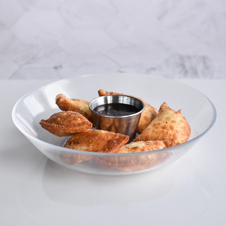 five deep-fried duck rangoons served with korean bbq sauce $18